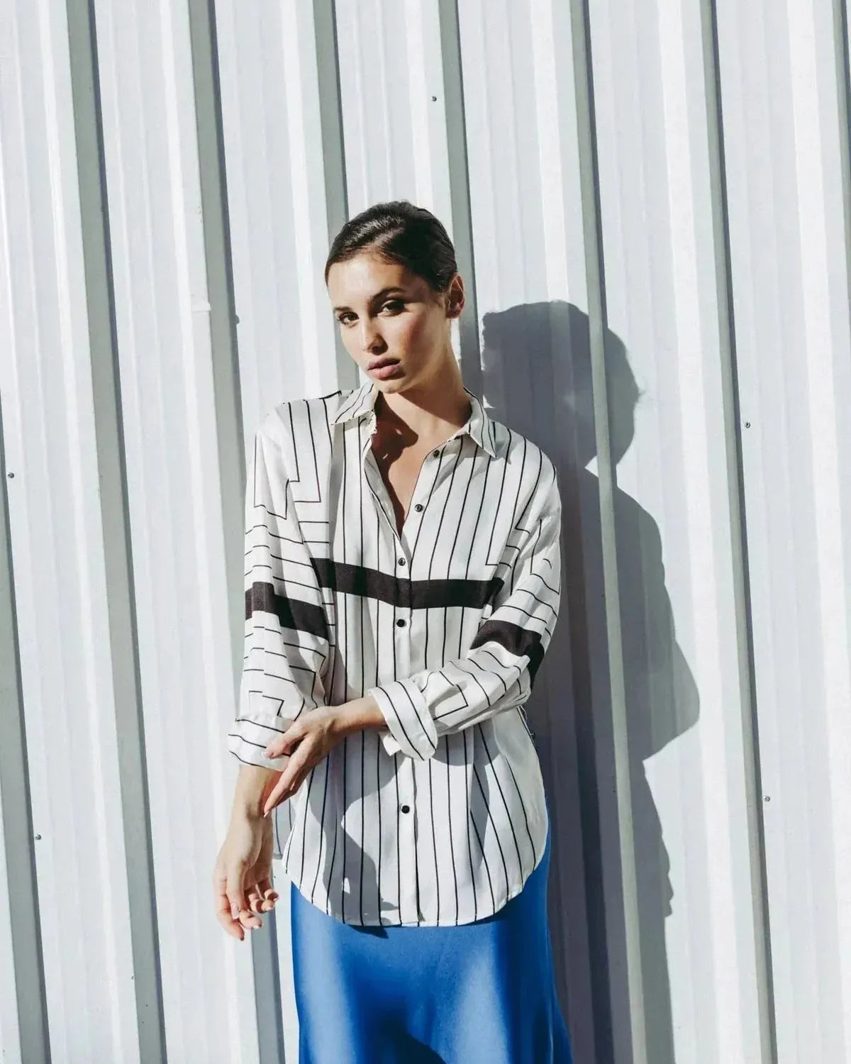 Chemise Ample Fluide à Rayures Noires et Blanches