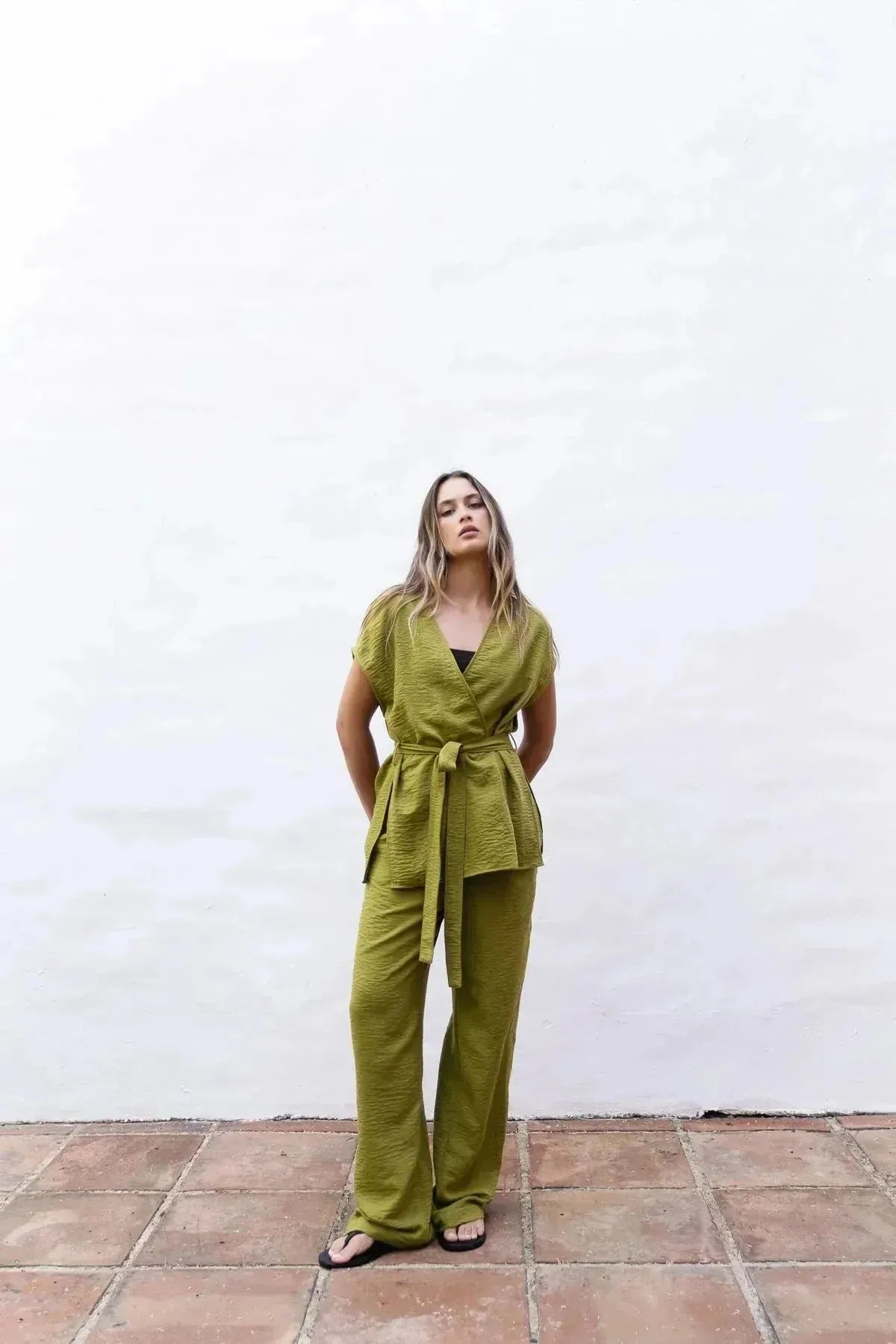 Pantalon Fluide Vert Taille Haute