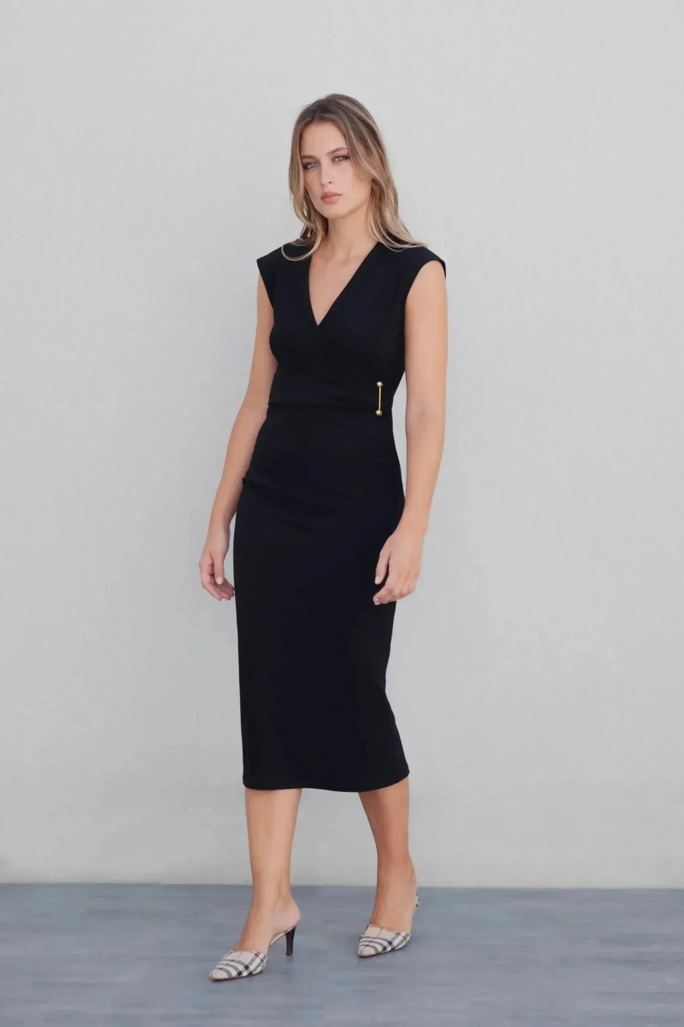 Robe midi noire chic détail doré