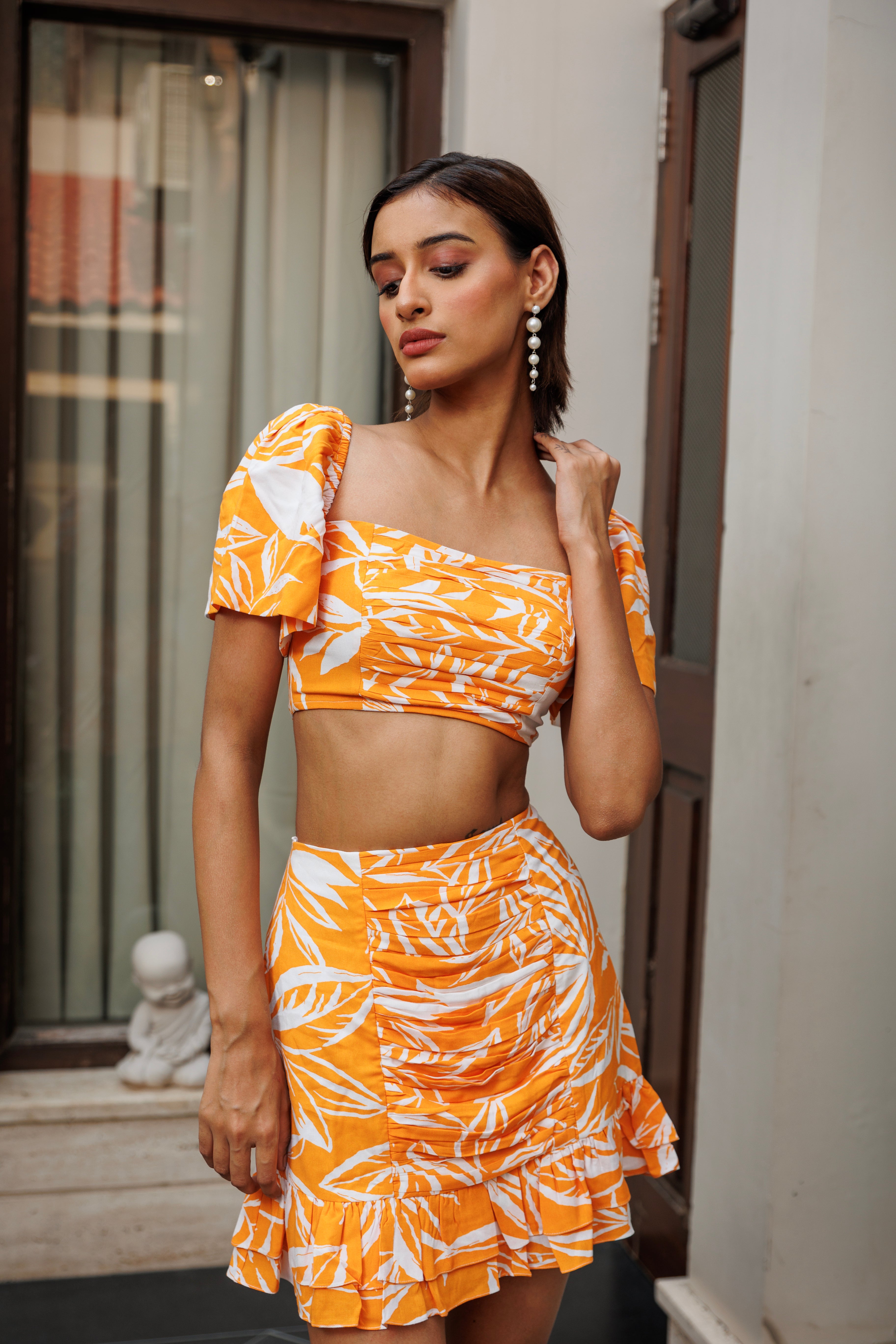 Summer evenings - crop ruched top in yellow
